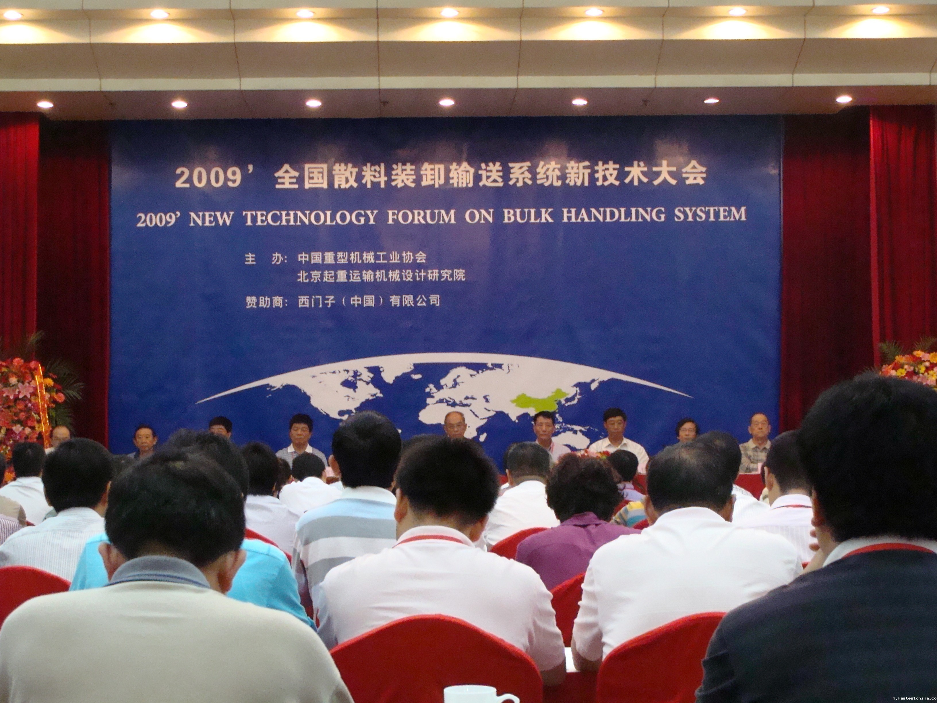 本次会议由中国重型机械工业协会和北京起重运输机械设计研究院共同主办,我会协办,并参与会议的策划与组织。会议期间来自散料装卸、输送行业的龙头企业上海振华重工集团公司、大连重工·起重集团、北方重工沈矿集团、华电重工装备有限公司以及北京起重运输机械设计研究院、煤炭科学研究总院上海分院、太原科技大学、东北大学等著名的科研院所和高校、企业的11位专家和学者做了精彩的专题技术报告,内容涉及大型带式输送机、管带输送机、翻车机、斗式提升机、装车机等产品和系统的国内最新技术发展现状和国内外发展趋势以及散料存仓、带式输送机动态分析等。