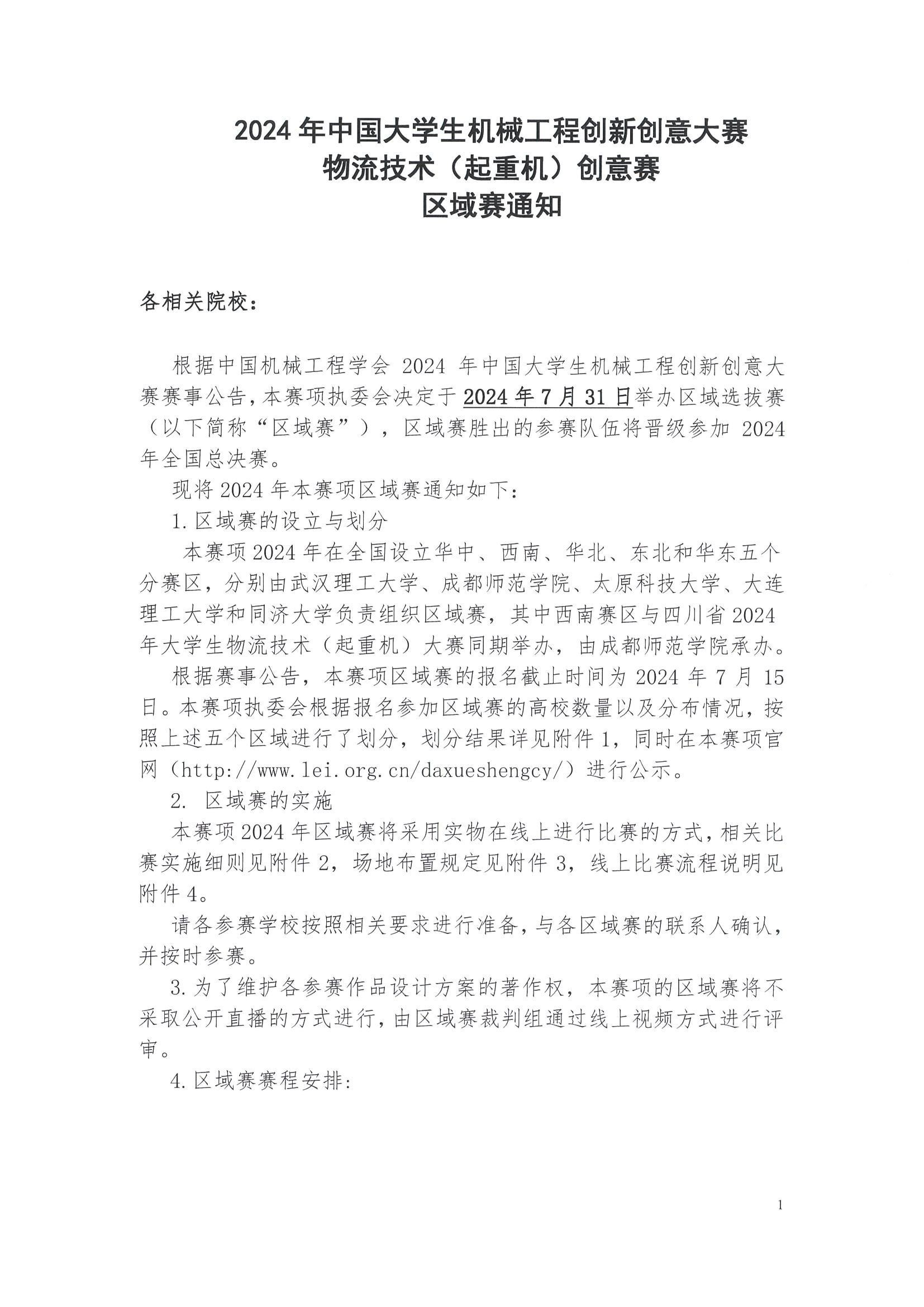 2024年中国大学生机械工程创新创意大赛物流技术 (起重机) 创意赛区域赛通知