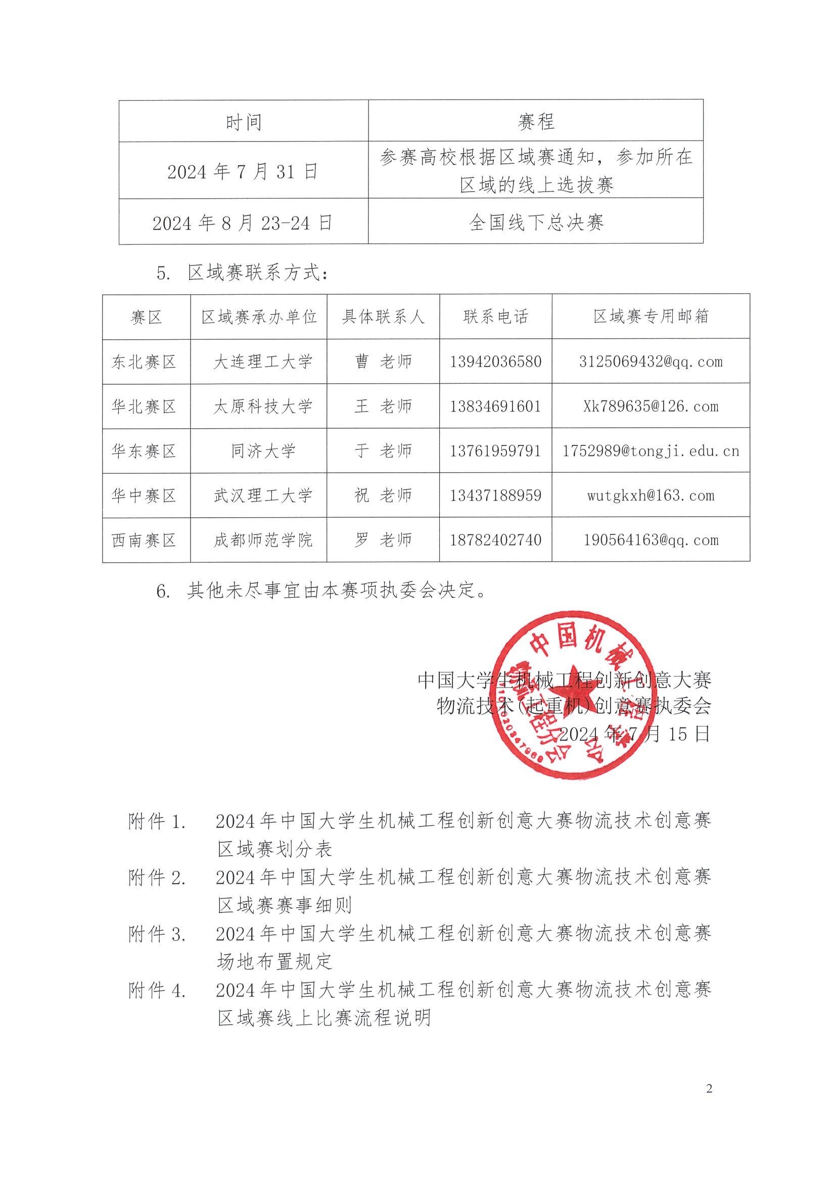 2024年中国大学生机械工程创新创意大赛物流技术(起重机)创意赛区域赛各区域赛裁判委员名