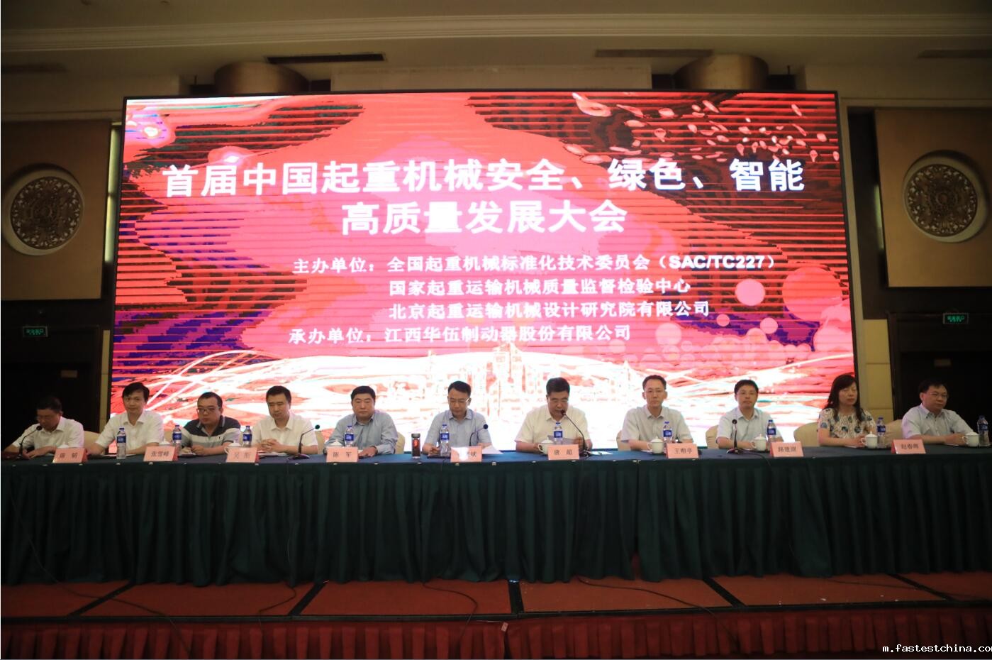 当前,随着中国经济发展进入新常态,我国起重机械装备制造业也逐渐由高速发展向高质量发展转变,安全、绿色、智能逐渐成为行业发展趋势。为全面落实国家制造强国、质量强国战略,推进起重机械行业高质量发展,构建权威的生产、使用和检验技术交流平台,使各有关单位能够全方位掌握我国起重机械在法规、标准、技术、工艺和管理等方面的新变化、新理念和国际先进水平,2019年6月25日至28日,全国起重机械标准化技术委员会、国家起重运输机械质量监督检验中心(以下简称质检中心)、北京起重运输机械设计研究院有限公司(以下简称北起院)联合主办,江西华伍制动器股份有限公司承办,在江西省南昌市召开了“首届中国起重机械安全、绿色、智能高质量发展大会”,全国起重机械行业的生产单位、检验机构和使用单位等方面的代表共计240余人参加了会议。