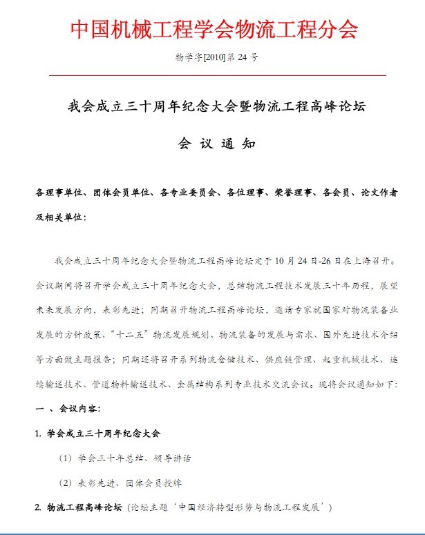 中国机械工程学会物流工程分会成立三十周年纪念大会在上海隆重召